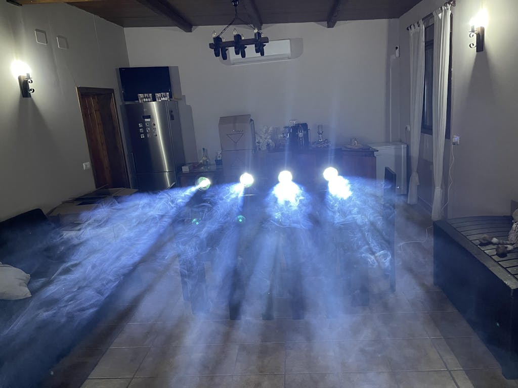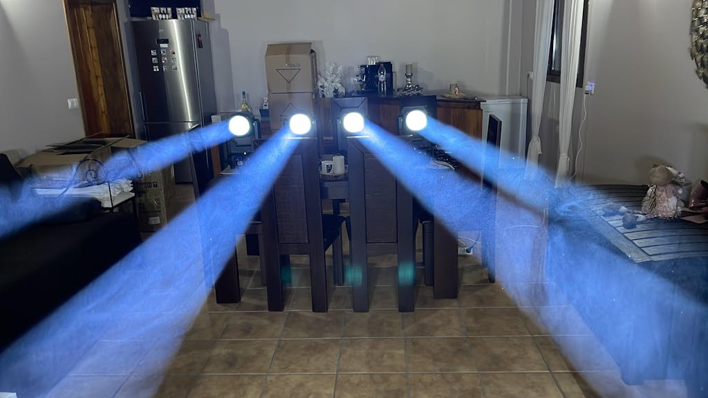 Betriebsmodi: DMX512, Auto Run, Soundsteuerung, Strobe, Stand-alone- und Master/Slave-Betrieb mit umfangreichen, fortschrittlichen integrierten Programmen.