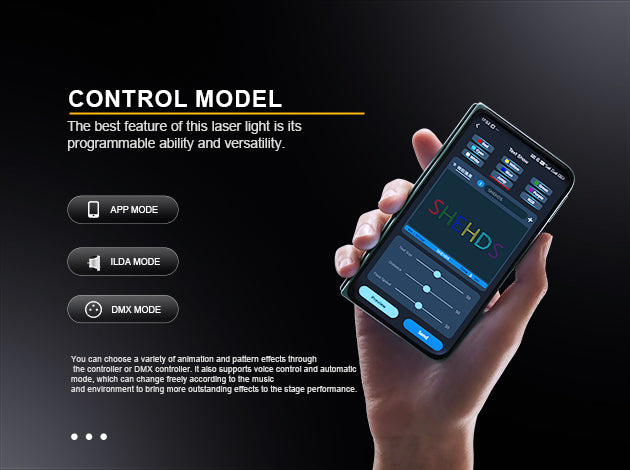 You can choose a variety of animation and pattern effects through the controller or DMX controller.