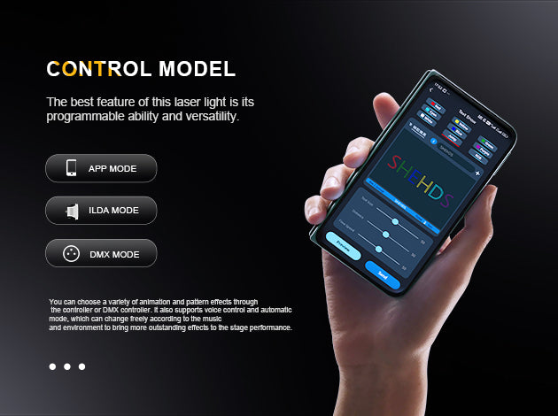 You can choose a variety of animation and pattern effects through the controller or DMX controller.